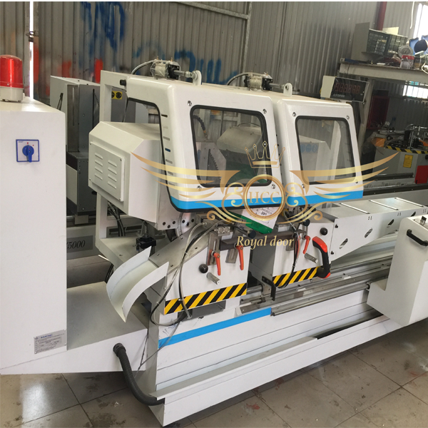 - Đưa nhôm vào cắt theo kích thước cửa thông báo sản xuất cửa bộ phận kỹ thuật gửi xuống. Ở đây máy được sử dụng dùng là máy cắt 2 đầu, sai số cho phát không vượt quá 0.01mm